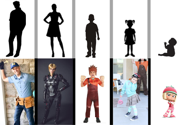 - Wreck-It Ralph: Everyone loves a good video game theme. This one’s going to require DIY creativity – but that’s part of the fun! Vintage or modern, odds are most everyone will know who you are. “It’s fun to be nostalgic – I think that’s what made us all love this costume so much! We were able to bring our boys back to our era of video games and they loved learning about the characters and then pretending to have those “super powers”, like Olenka and her Street Fighter family in the photo above “or, you can go more pop-culture like this Wreck-It Ralph cast ensemble.”