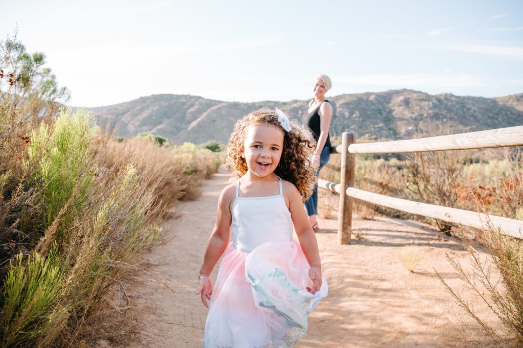 You can’t tell from the photos, but Kaia had a major meltdown on the way to meeting Geena at Mission Trails, which is an incredible site for family shots. She then fell on the walk to the first spot we took photos (skinned her knee!) and mind you this was during the mega heatwave we had a few months back.