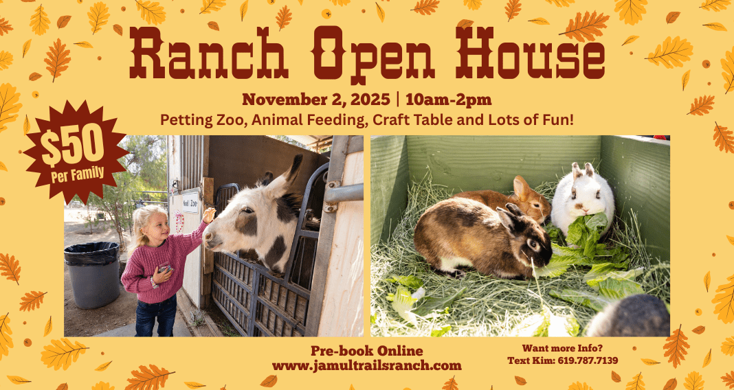 Jamul Trails Ranch invites families to its Open House – Family Fun Day on Sunday, November 2, 2025, from 10 AM to 2 PM at 2865 Echo Valley Road, Jamul, CA. Guests will step into a festive fall setting and enjoy a day filled with hands-on activities, from visiting the petting zoo and feeding the […]