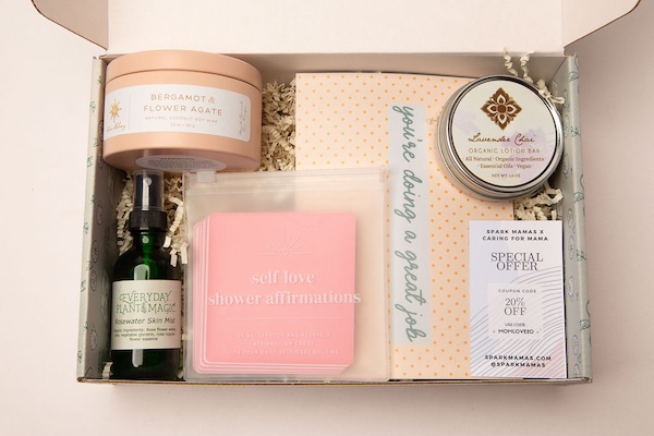 Lift her spirits and boost her mood with this rejuvenating self-care package designed to nourish, uplift and support busy mamas. Organic body care items, self-love affirmation cards, a warming candle and access to supportive wellness experiences are lovingly packaged together to bring out her radiance from within.