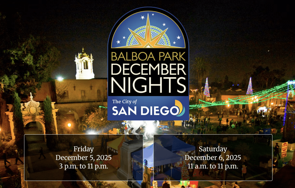 The City of San Diego’s largest free holiday festival in beautiful Balboa Park is back on December 5 and 6. The family friendly event brings San Diegans together to enjoy the lights, the sounds, the attractions and of course, the amazing food.