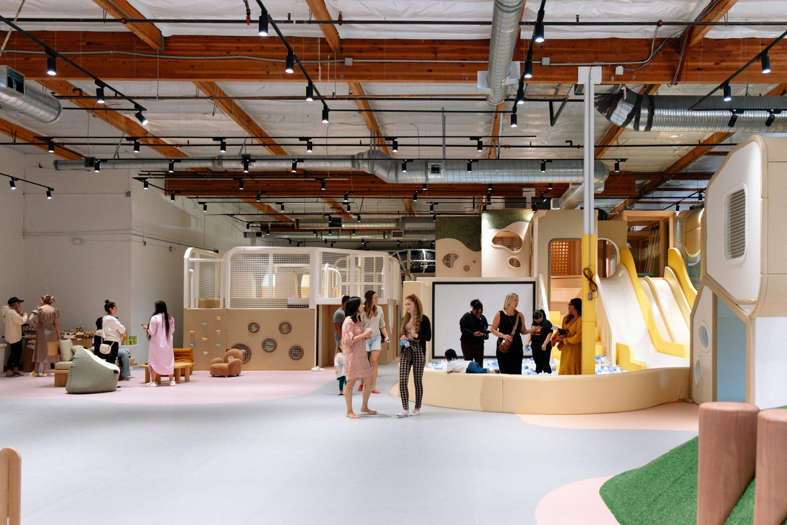 Kids & Coffee features imaginative play structures, including a mini grocery store, as well as soft play zones, parkour elements and sensory-driven spaces such as a ball pit with 23,000 balls and multiple slides.