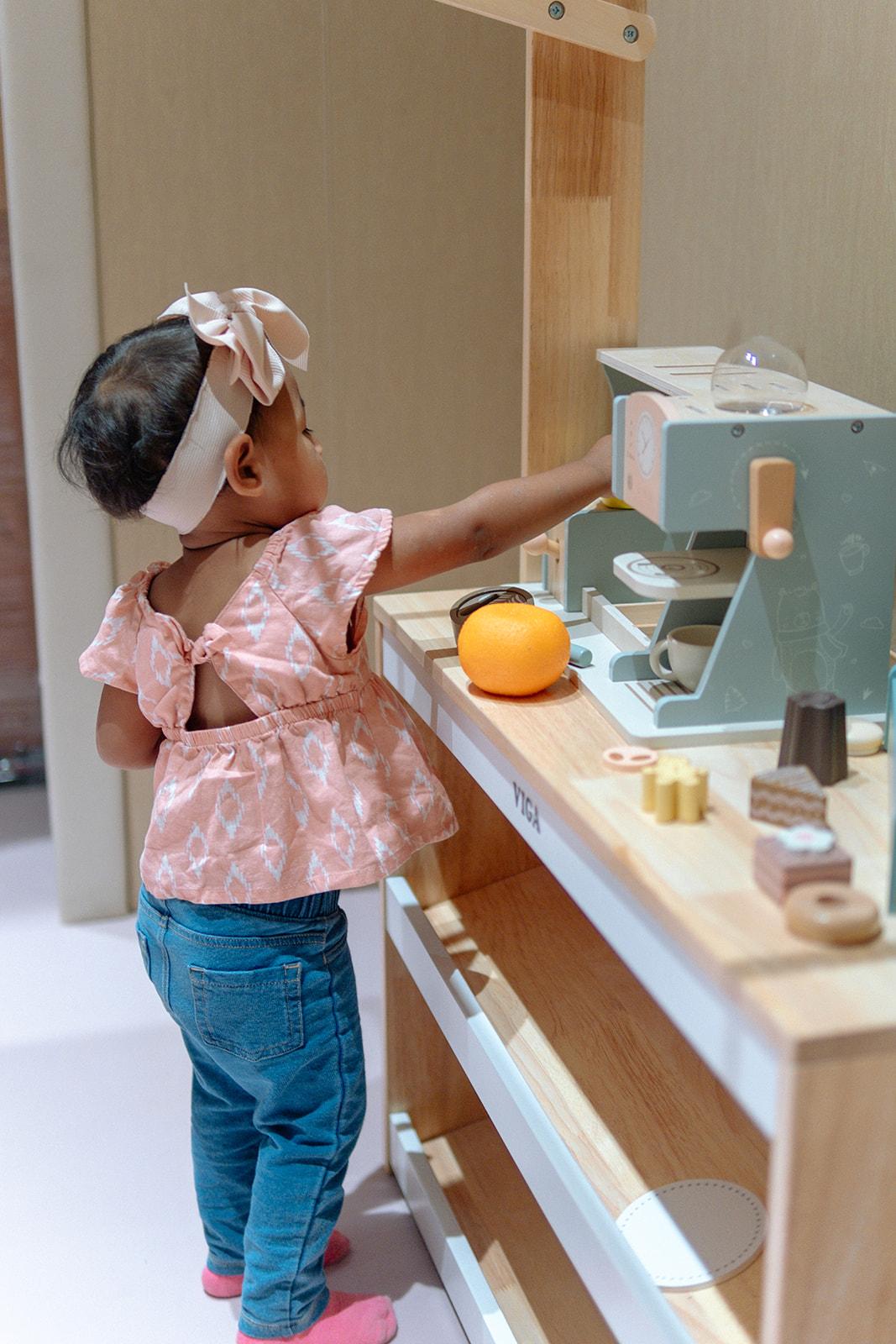Kids & Coffee, also designed with parents and caregivers in mind, offers a cafe and lounge with free wi-fi. The cafe serves specialty coffee from Mostra Coffee, as well as light refreshments, including fresh pastries and sandwiches.
