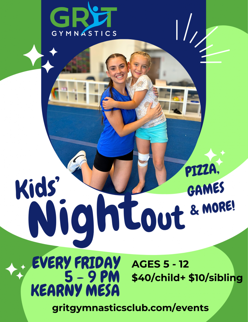 Every Friday drop the kids off for an evening of fun while you enjoy a night out! Kids Night Out includes gymnastics instruction, group games, a themed craft, and plenty of time to jump, climb, and play in the gym. Perfect for those families in San Diego/Kearny Mesa that are looking for a date night spot to drop off the kids!
